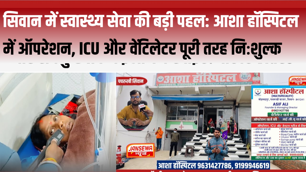 सिवान में स्वास्थ्य सेवा की बड़ी पहल: आशा हॉस्पिटल में ऑपरेशन, ICU और वेंटिलेटर पूरी तरह निःशुल्क