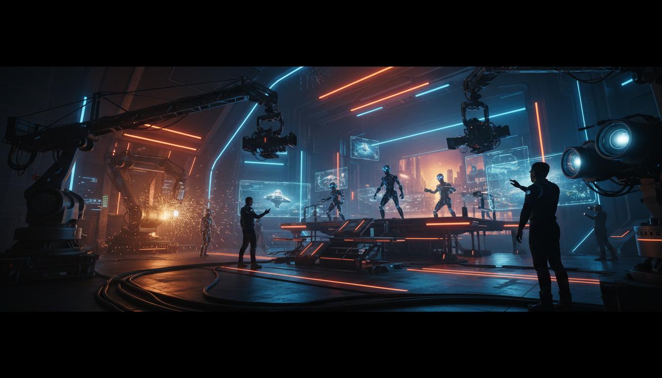 Virtual production stages use massive LED walls and AI to create immersive digital environments in real-time.