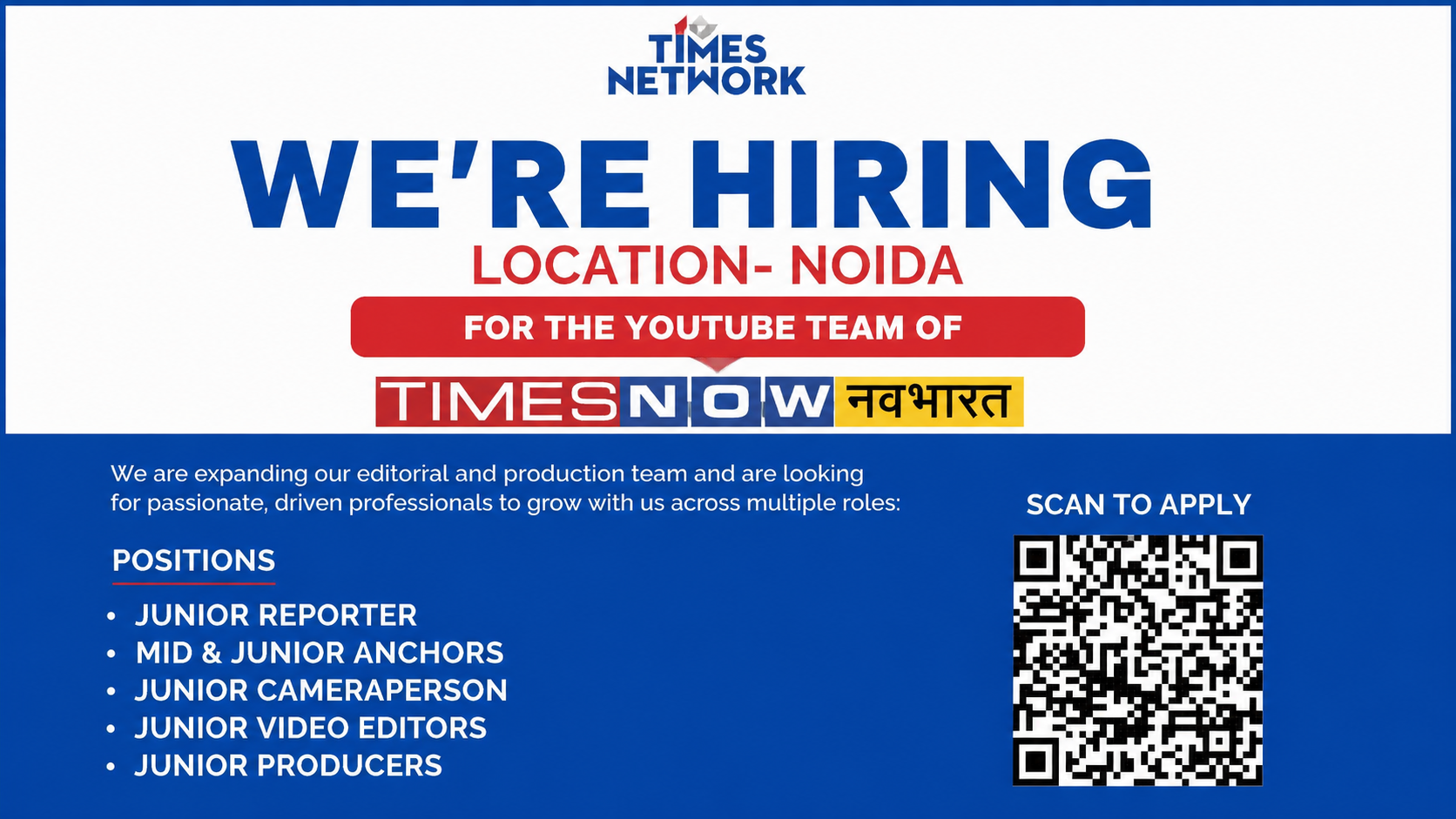 नोएडा से मीडिया और पत्रकारिता क्षेत्र में करियर बनाने वाले युवाओं के लिए एक शानदार खबर सामने आई है। टाइम्स नेटवर्क ने अपने यूट्यूब प्लेटफॉर्म Times Now Navbharat के लिए विभिन्न पदों पर भर्ती की घोषणा की है। कंपनी अपने एडिटोरियल और प्रोडक्शन टीम का विस्तार कर रही है और इसके लिए योग्य एवं उत्साही उम्मीदवारों की तलाश की जा रही है।